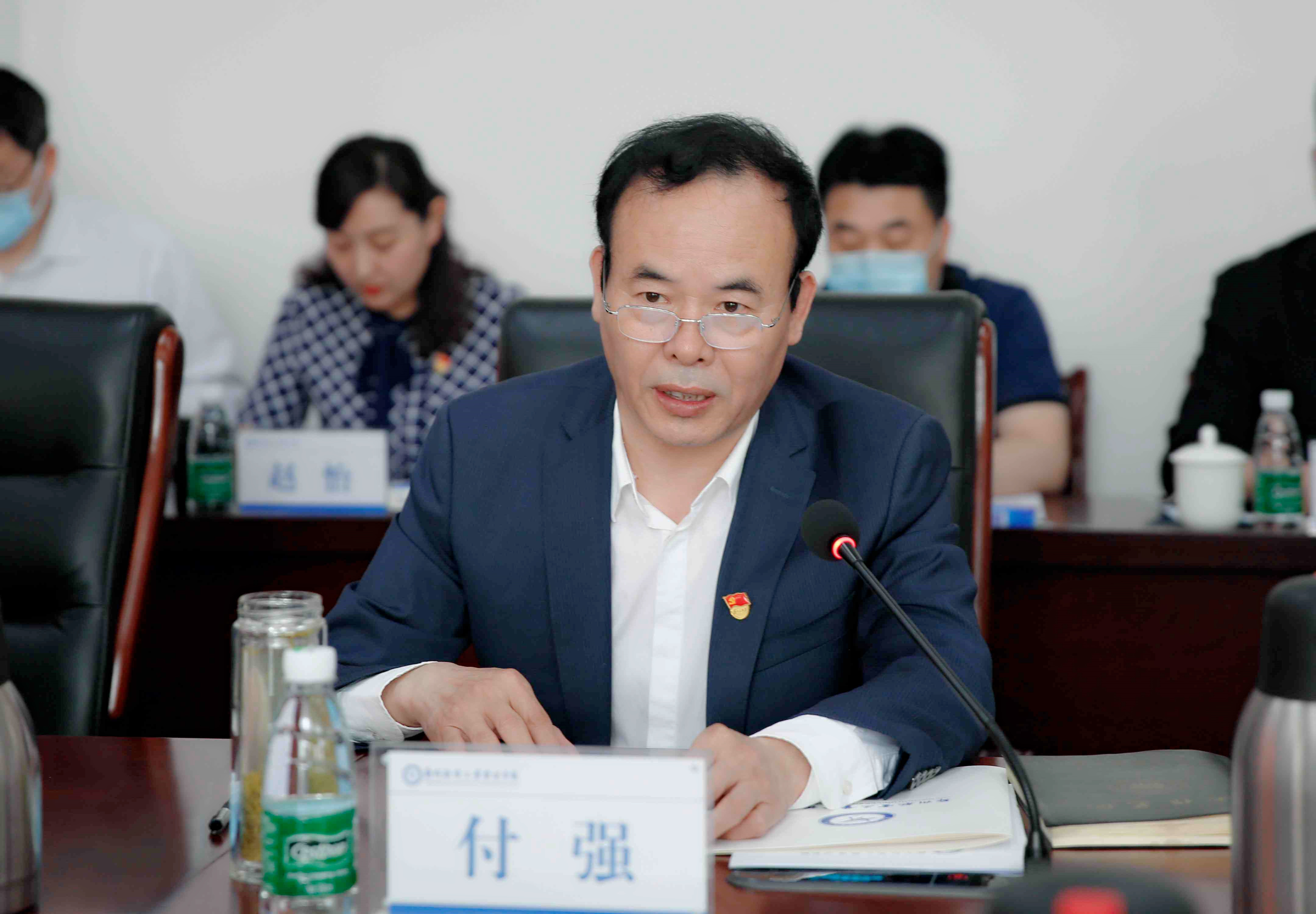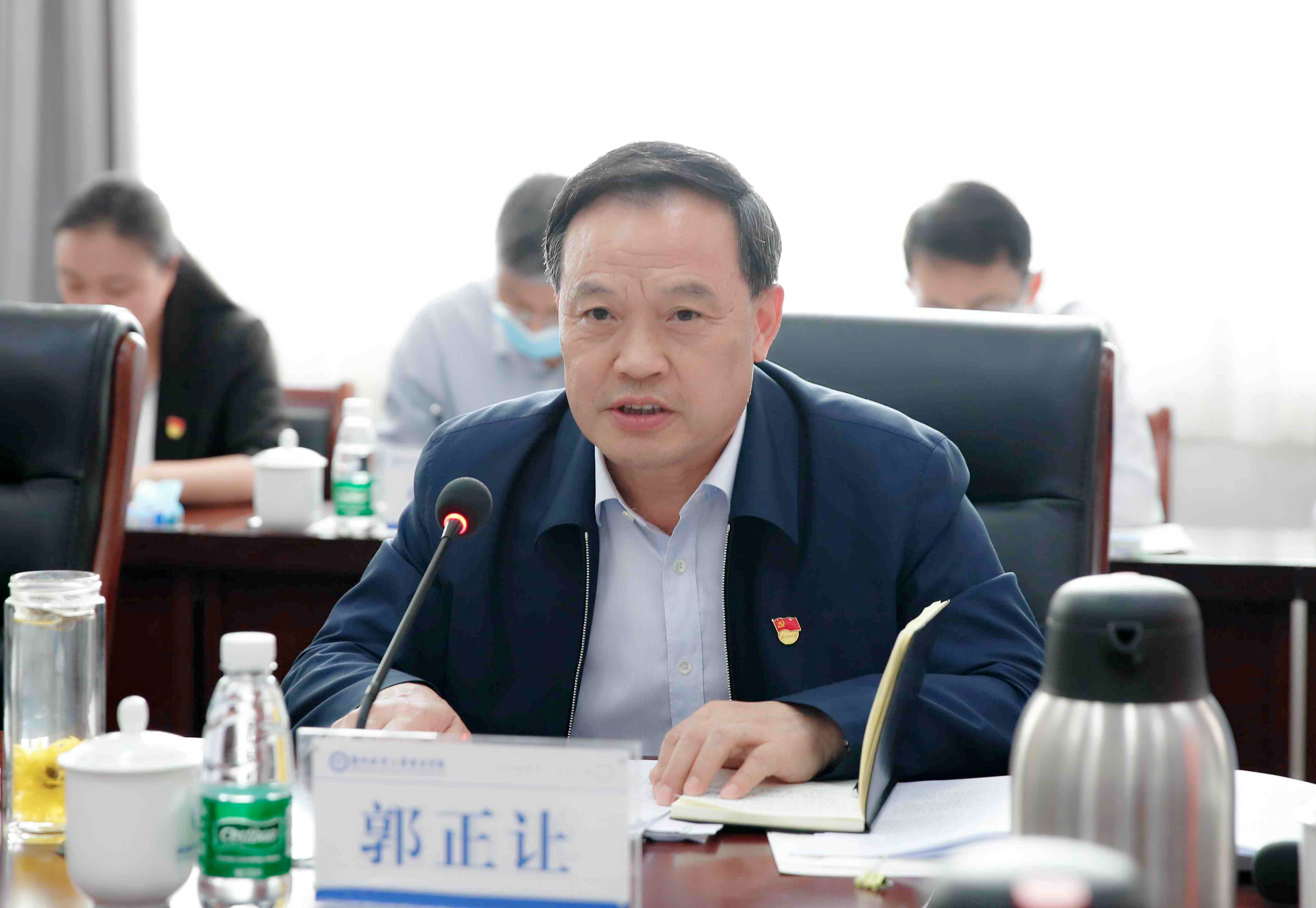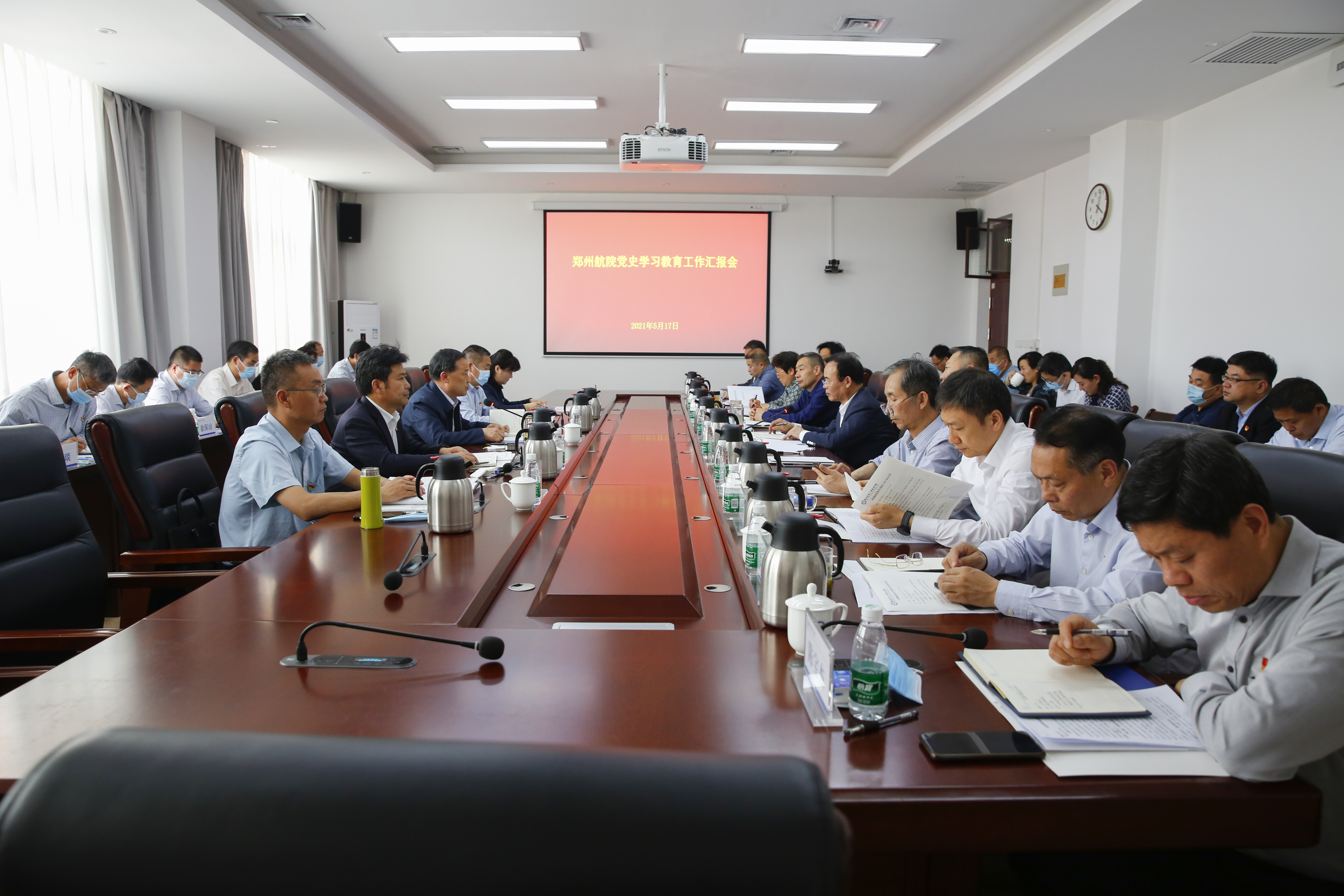 5月17日,省委高校工委第二巡回指导组副组长郭正让和指导组成员丁大军、张宝柱、王晓艺、李宏宇一行5人来校检查指导学校党史学习教育工作。校党委书记、学校党史学习教育领导小组组长付强汇报了学校党史学习教育开展情况。全体校领导、党委各部门主要负责人、各二级党组织书记、基层党支部书记、学院行政正职、党史学习教育领导小组办公室主要成员等参加汇报会。