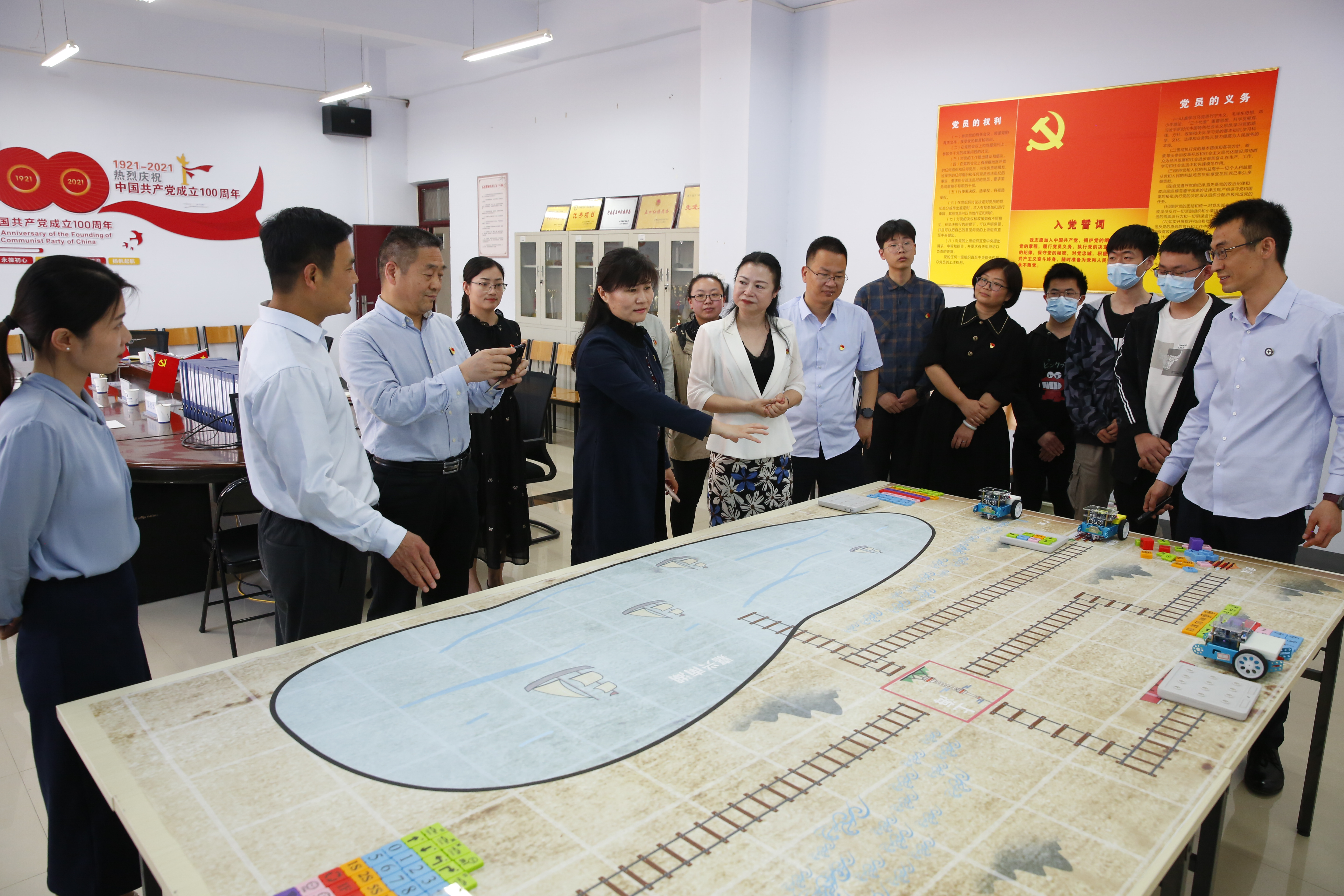 汇报会后,巡回指导组一行查阅相关材料,参观航空文化馆,走访经济学院、航空工程学院,与师生亲切交流,深入了解学校层面和基层单位党史学习教育开展情况,就进一步推进党史学习教育提出具体指导意见。