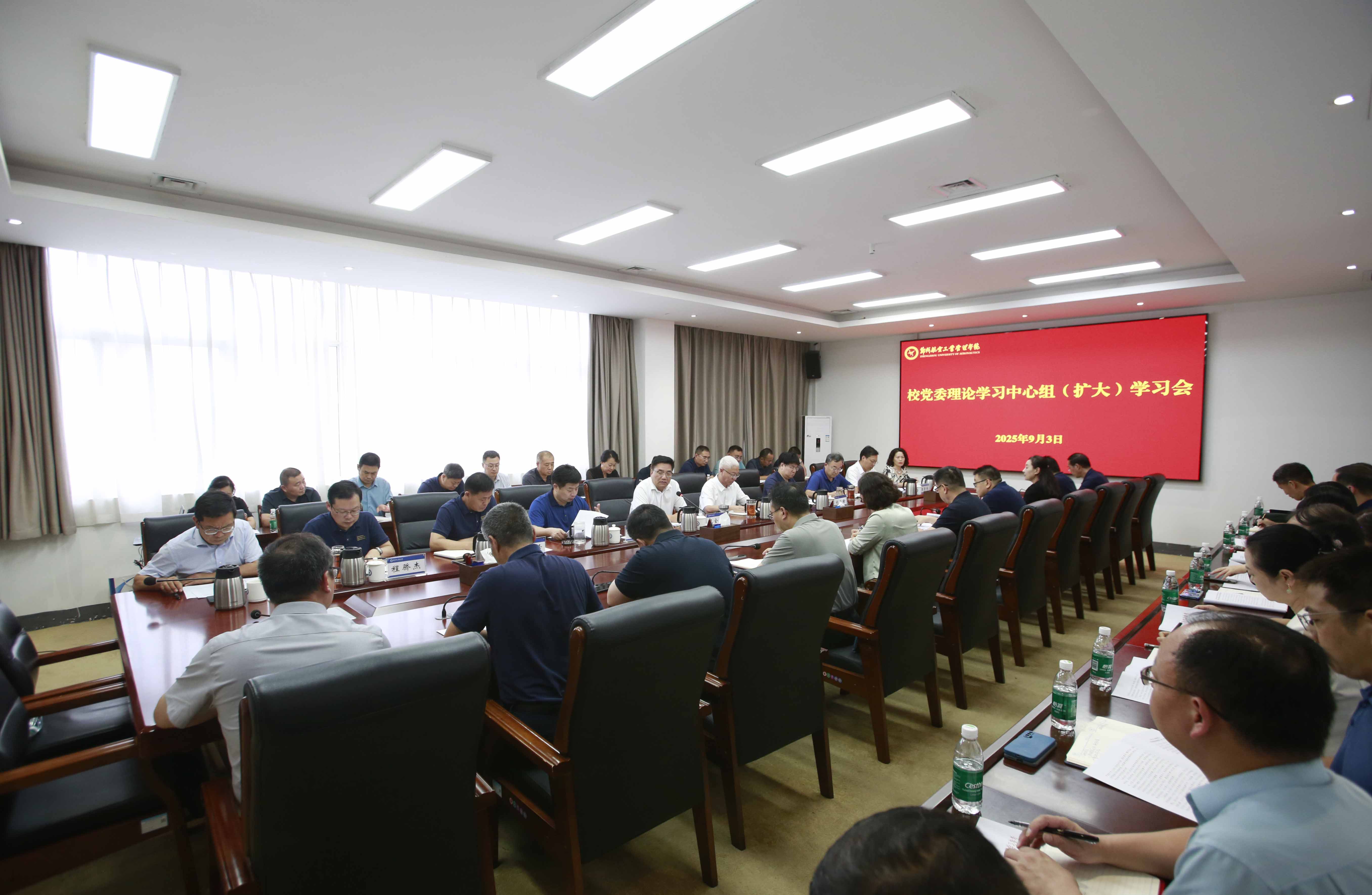 王全良指出,习近平总书记在纪念中国人民抗日战争暨世界反法西斯战争胜利80周年大会上的讲话立意高远、精辟深邃、内涵丰富,充分展现了中国坚定维护世界和平与安全的大国担当。全校要深入学习贯彻习近平总书记重要讲话精神,深刻领会伟大抗战精神的时代价值和丰富内涵。要深化爱国主义教育,将抗战历史、抗战精神有机融入思想政治理论课和课程思政建设,引导青年学生深刻认识中国共产党在抗战中的中流砥柱作用,坚定理想信念,厚植家国情怀。要强化使命担当,立足航空院校特色,教育引导学生将个人理想融入国家发展伟业,立志为祖国的航空航天事业和国防现代化建设贡献智慧力量。要坚持自强不息,发扬斗争精神,增强斗争本领,面对科技领域的挑战,勇于创新突破,将抗战精神转化为推动学校高质量发展、服务国家战略需求的强大动能。
